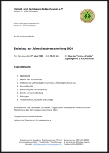 Wir freuen uns auch heuer wieder auf die Jahreshauptversammlung im Haus der Vereine „d´Metzg“ sowie auf zahlreiches Erscheinen! Zeigen Sie gerne Ihr Interesse am Verein durch Ihre Teilnahme.
